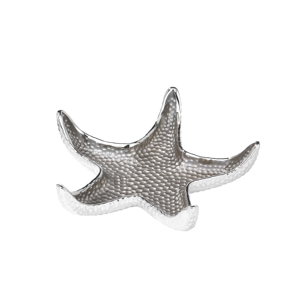 Questa ciotola è completamente realizzata in vetro. La superficie esterna è stata ricoperta in puro Argento 999 risultando lucida al tatto ed alla vista. La sua parte interna invece è stata sapientemente decorata a mano dai nostri artigiani, che per questo prodotto hanno utilizzato una finitura di color sabbia