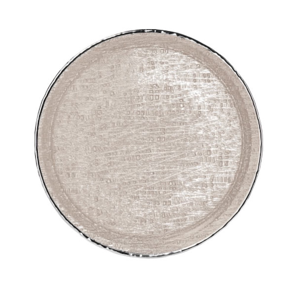 Questa ciotola è completamente realizzata in vetro. La superficie esterna è stata ricoperta in puro Argento 999 risultando lucida al tatto ed alla vista. La sua parte interna invece è stata sapientemente decorata a mano dai nostri artigiani, che per questo prodotto hanno utilizzato una finitura di color Oro