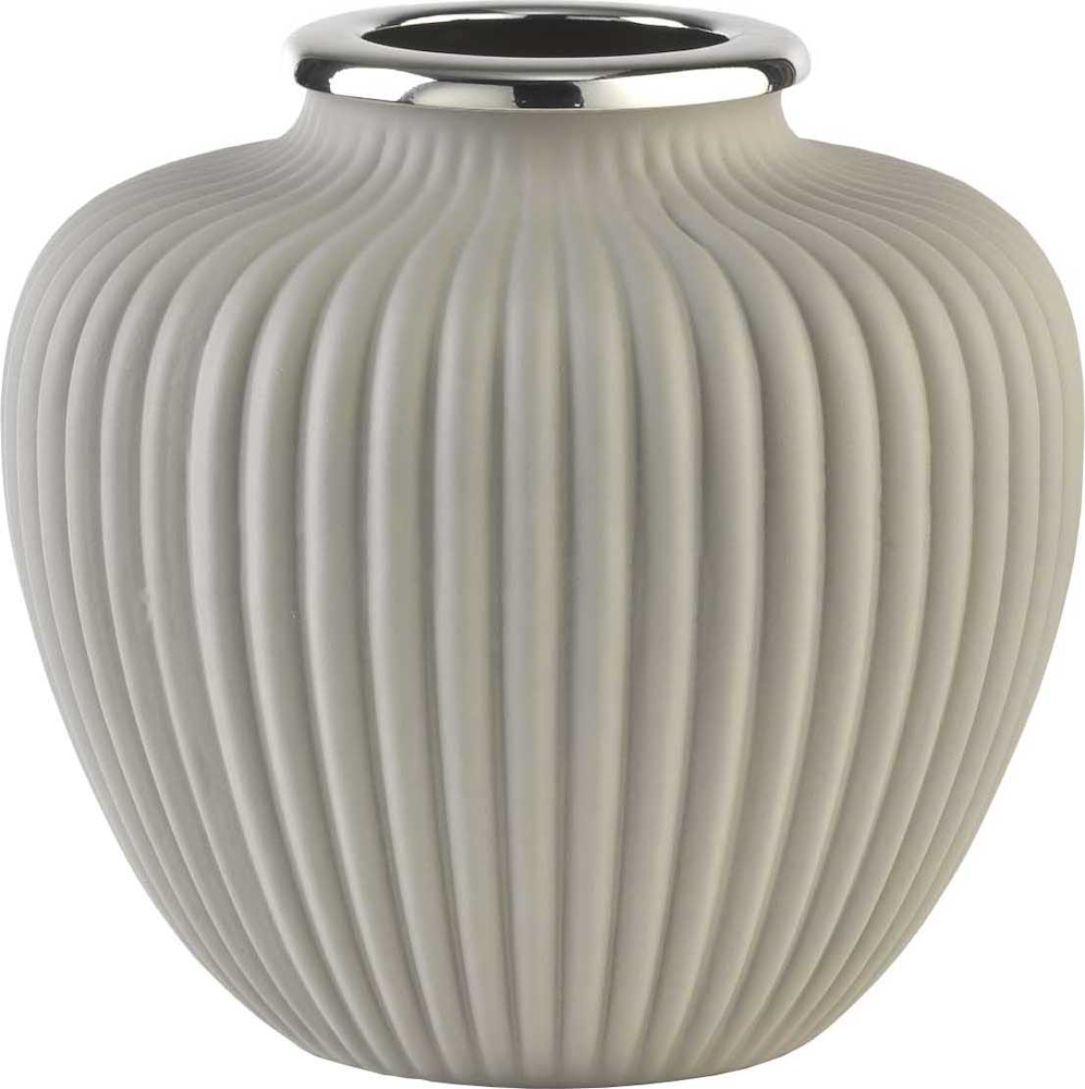 Questo vaso è completamente realizzata in vetro. La superficie esterna è stata ricoperta in PVD color tortora risultando opaco al tatto ed alla vista. Il bordo del vaso è rivestito in argento