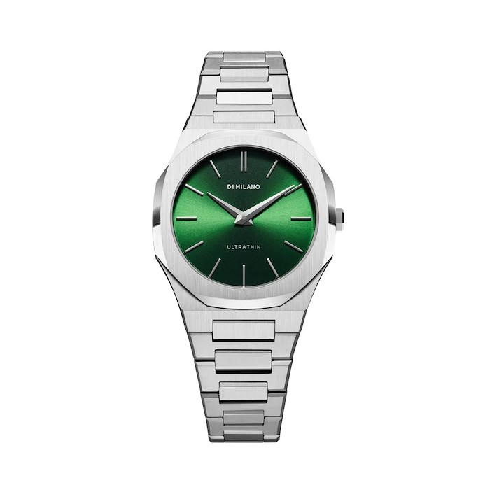 Progettato sulla base del nostro bestseller Moss ma con una cassa più piccola pensata per le donne. Mantenendo gli stessi elementi in acciaio inossidabile, il quadrante verde bottiglia ora presenta una finitura Sunray.