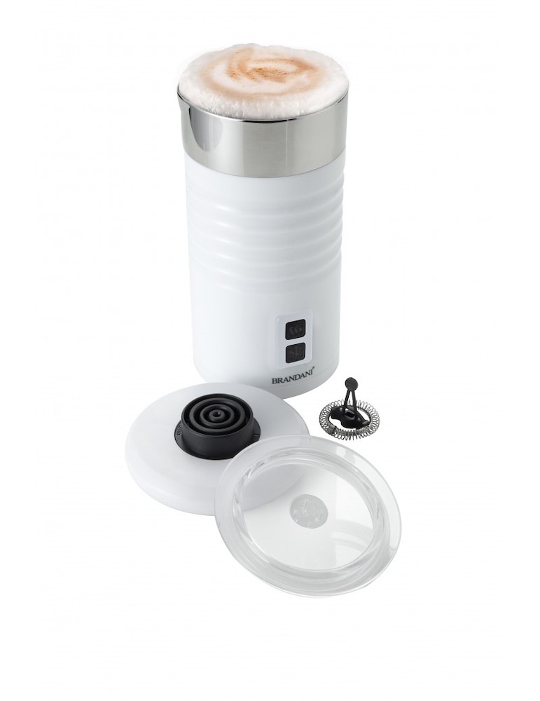 Lo schiumotto bianco di Brandani e’ l’immancabile scalda-monta latte automatico con cui poter preparare il cappuccino come quello del bar in poco tempo! Grazie ai due diversi tasti, lo Schiumotto Brandani puo’ scaldare e montare, oppure solo montare il latte. Una volta preparato il latte con lo scalda-monta latte schiumotto, in un batter d’occhio saranno pronti anche il cappuccino, il latte macchiato, la cioccolata calda e molte altre squisite bevande. Per un miglior risultato, si consiglia di utilizzare il latte intero.Con due diverse fruste in dotazione.