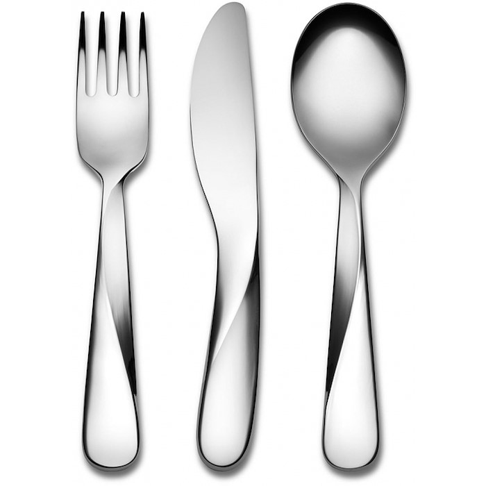 Giro Kids è un set di posate formato da coltello, forchetta e cucchiaio. Un attento lavoro di adattamento alle esigenze dei più piccoli le ha rese degli utensili perfetti per i loro primi pranzi in autonomia. La forchetta ha punte arrotondate e rebbi larghi, con una forma leggermente contenitiva, che ricorda quella del cucchiaio. Il coltello ha punta arrotondata e lama non affilata.