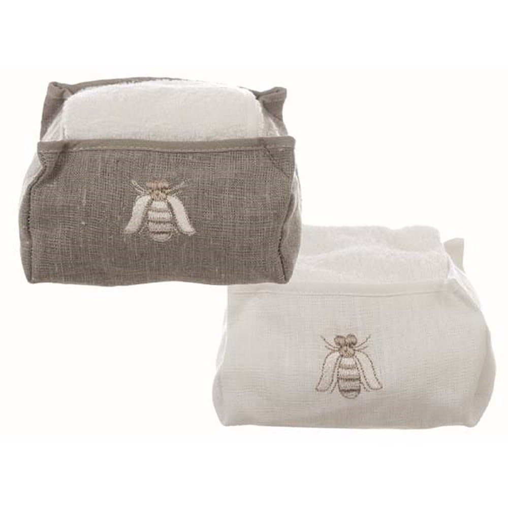 Cestino in cotone 100% con 2 lavette in spugna, decorato in rilievo con motivo api