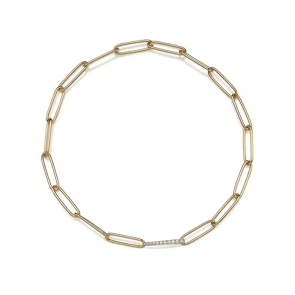 Bracciale Logo maglie ovali in oro giallo e bianco 18Kt e diamanti bianchi.