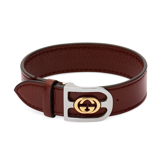 Bracciale Gucci in pelle bordeaux con fibbia in argento e GG in oro