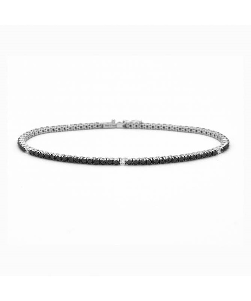 Damiani bracciale in oro bianco 18kt. con diamanti taglio brillante CT 0.08. colore G e diamanti neri per caratura 1.05, tutti incastonati sulla classica ed intramontabile montatura Tennis