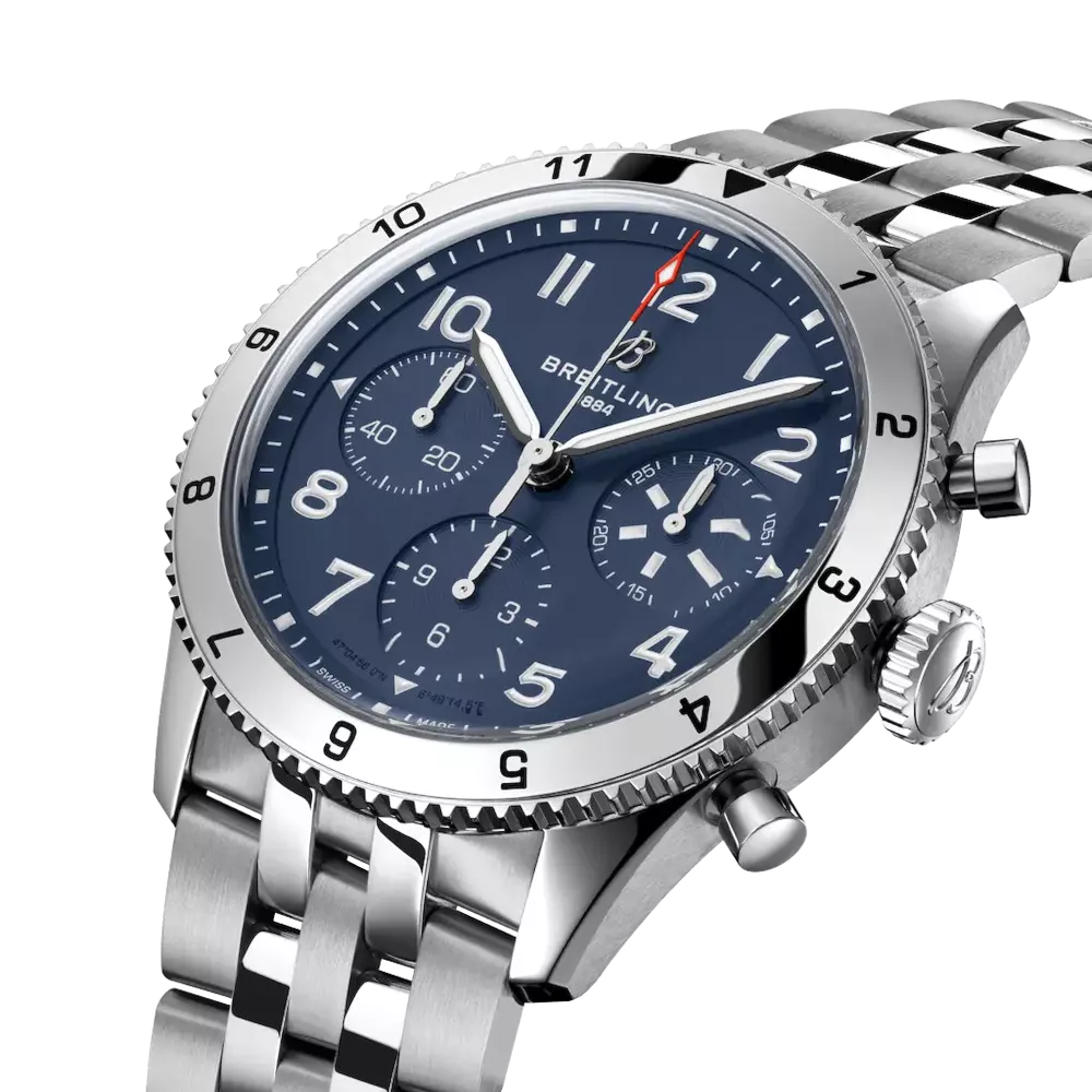From coral takeoffs, the first in history, to the birth of commercial air travel, Breitling's history is inseparable from that of flight. In the 1930s, Breitling's Huit Aviation Department became famous for the invention of precision cockpit watches. Twenty years later, Breitling presents another instrument for flight, this time to wear on the wrist: the Ref. 765 AVI. This pioneering pilot watch provided the technical basis for the current Classic AVI, a collection inspired by the vigorous spirit of the first famous airplanes. The Classic AVI Tribute to Vought F4U Corsair pays homage to one of these laws. The Corsair, an aircraft carrier fighter during the Second World War, had to ensure take-offs and landings in difficult conditions, between aircraft carriers and remote landing strips. Speed and climbing capacity were essential: the aircraft proved to be well up to the task, becoming the first single-engine fighter to reach 640 km/h, at the same time offering exceptional climbing speed. The folded wing design, large propeller diameter and distinctive blue livery have made it an emblem of aviation history. As a true pilot's watch produced to withstand the cockpit expectations of the time, the Classic AVI Tribute to Vought F4U Corsair features large, easy-to-read Arabic numerals on the dial and bezel. The knurled bezel on the 42mm case provides an optimal grip even for the hands of a glove-wearing rider. The stitched calfskin straps are a rich stitching on classic cockpit clothing, while the stainless steel bracelet offers an elegant alternative. Pilots, and beyond, will learn ease of reading, versatility in combination and sober style. The movement mechanism of the Classic AVI is the COSC certified Breitling Caliber 23 which offers approximately 48 hours