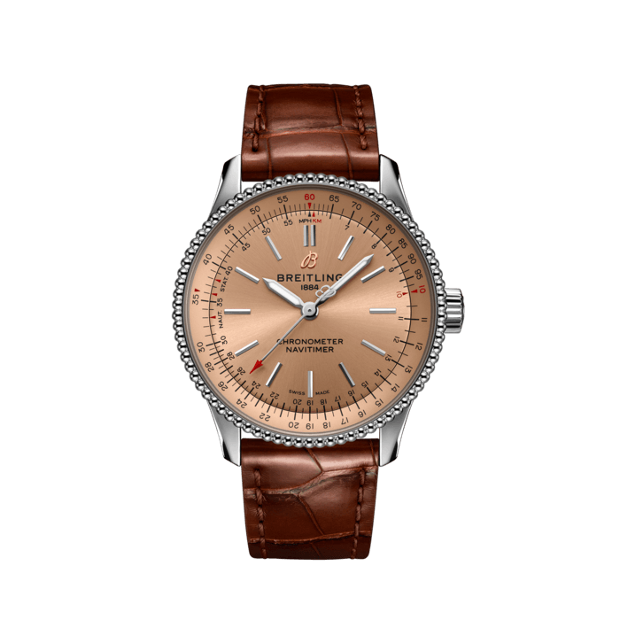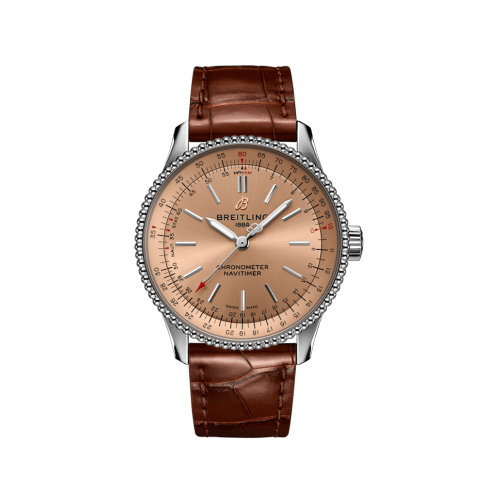 Raffinato ed elegante, il Navitimer Automatic 35 coniuga il fascino storico di una vera icona con la raffinatezza di un sofisticato segnatempo contemporaneo.