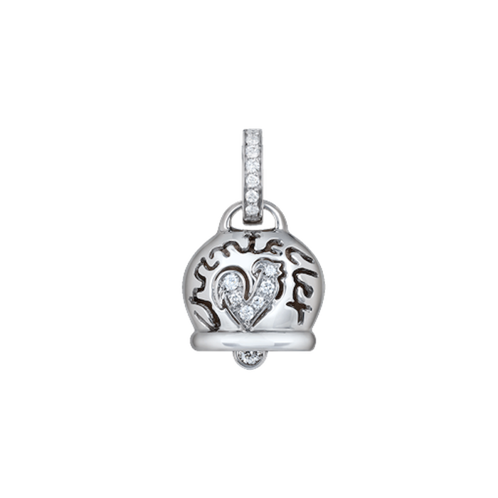 Medium Campanella pendant in 18Kt white gold, diamonds, and a rooster in diamond pavé.