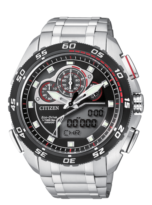 Crono a 1/1000 di sec. con tempi parziali e velocita' media sul giro. Memoria tempi e velocita' di 20 giri.Allarme. Timer. Display digitale illuminato a LED.