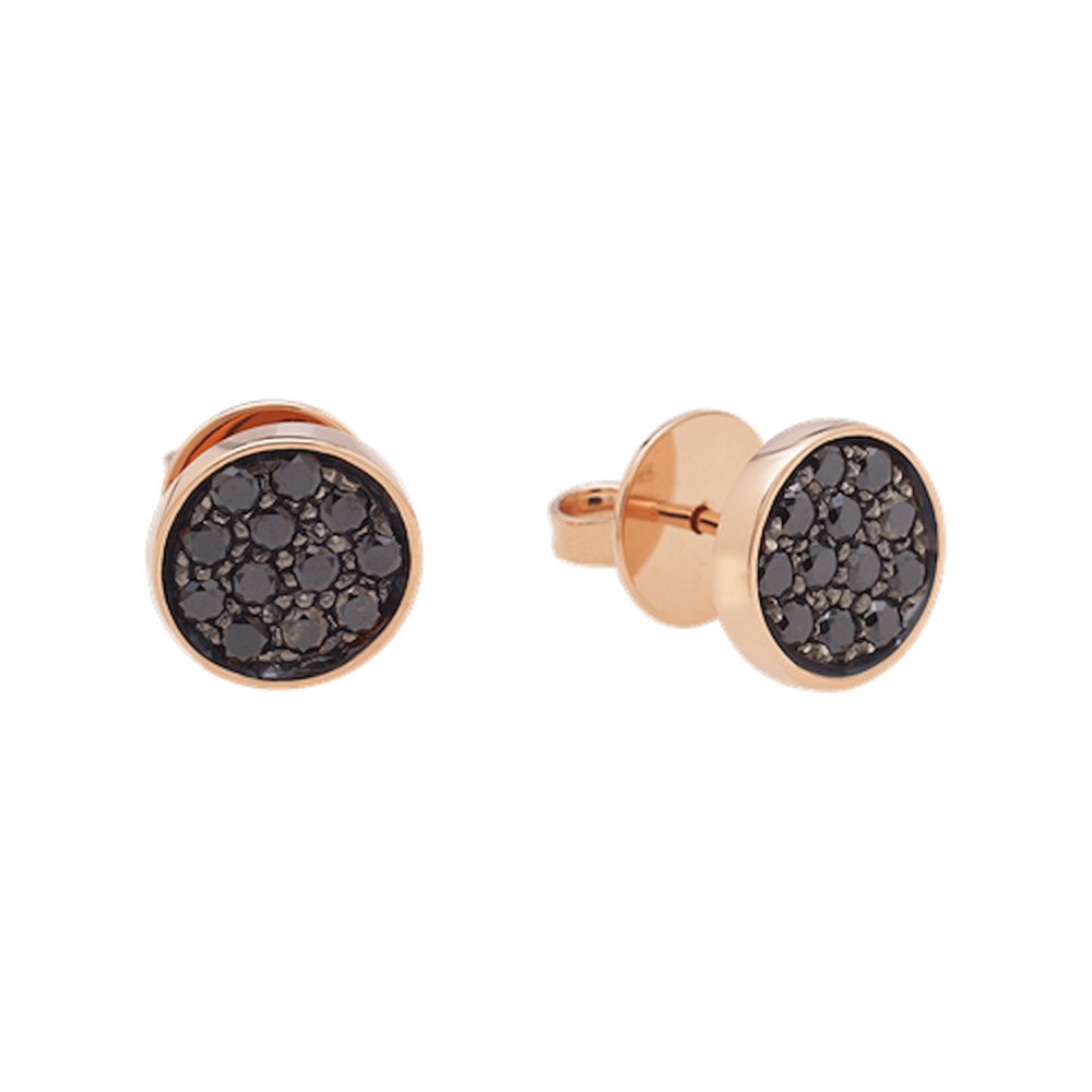 Capritude Paillettes 10mm stud earrings in 18Kt rose gold with black diamond pavé