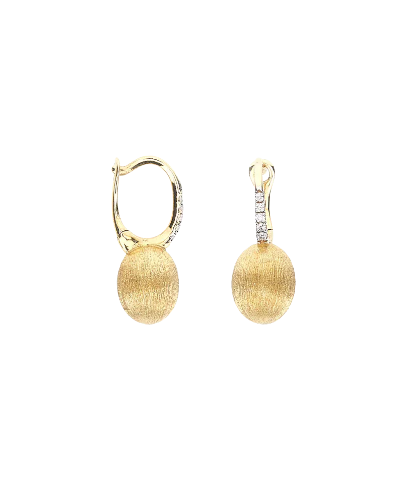 Baby cherry earrings in engraved yellow gold, set with round brilliant-cut diamonds totalling 0.04 ct, clarity VS, colour G, dimensions 6.0 x 16.5 mm, item code OS41-583.