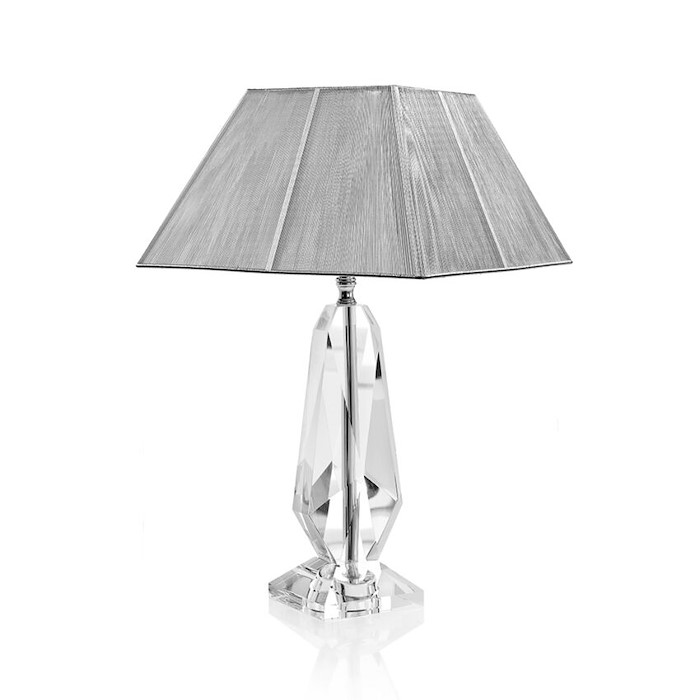 Ottaviani Lampada con base in cristallo e cappello tessuto bianco
