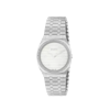30mm stainless steel multi layered case, bezel set with diamonds, white brass dial with Interlocking G motif, five links stainless steel bracelet