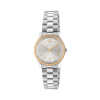 Rose gold-plated bezel, silver dial with two diamonds, GG motif and Gucci lettering