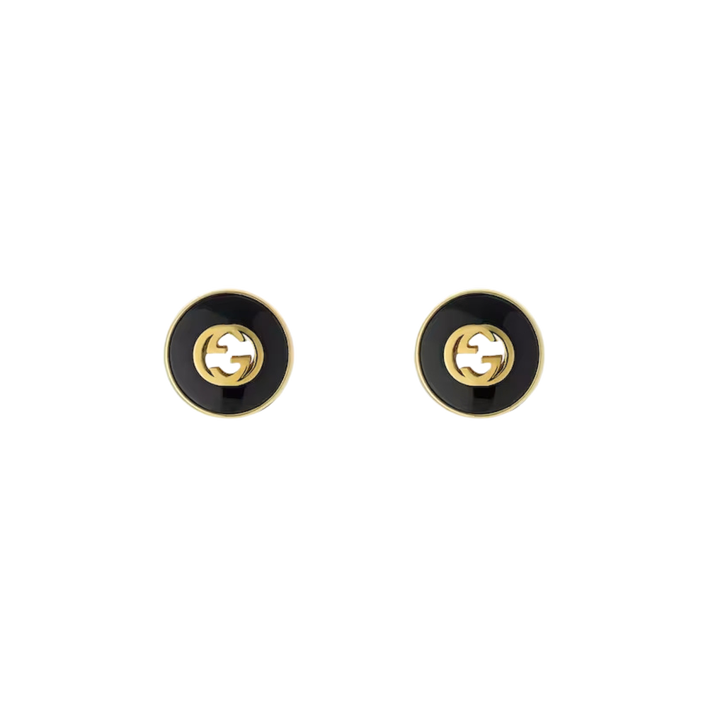 The Incrocio GG logo is presented in elegant new versions for the Pre-Fall 2024 collection. Precious black onyx stone is paired with 18k yellow gold in these Incrocio GG stud earrings. The model can be worn with other accessories from the same line.