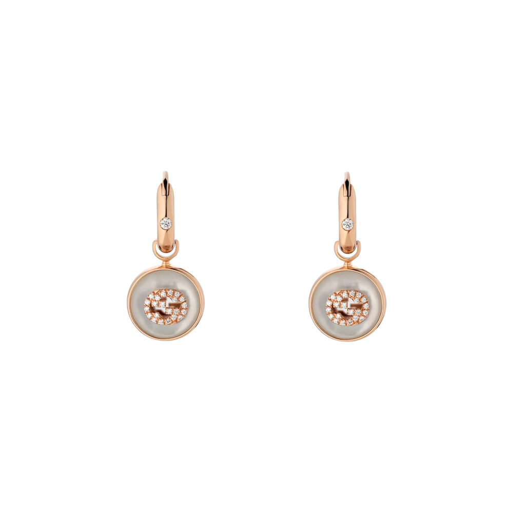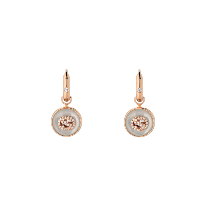 Gucci Inteloking Loop Earrings Gold 18k Diamonds Mother of Pearl