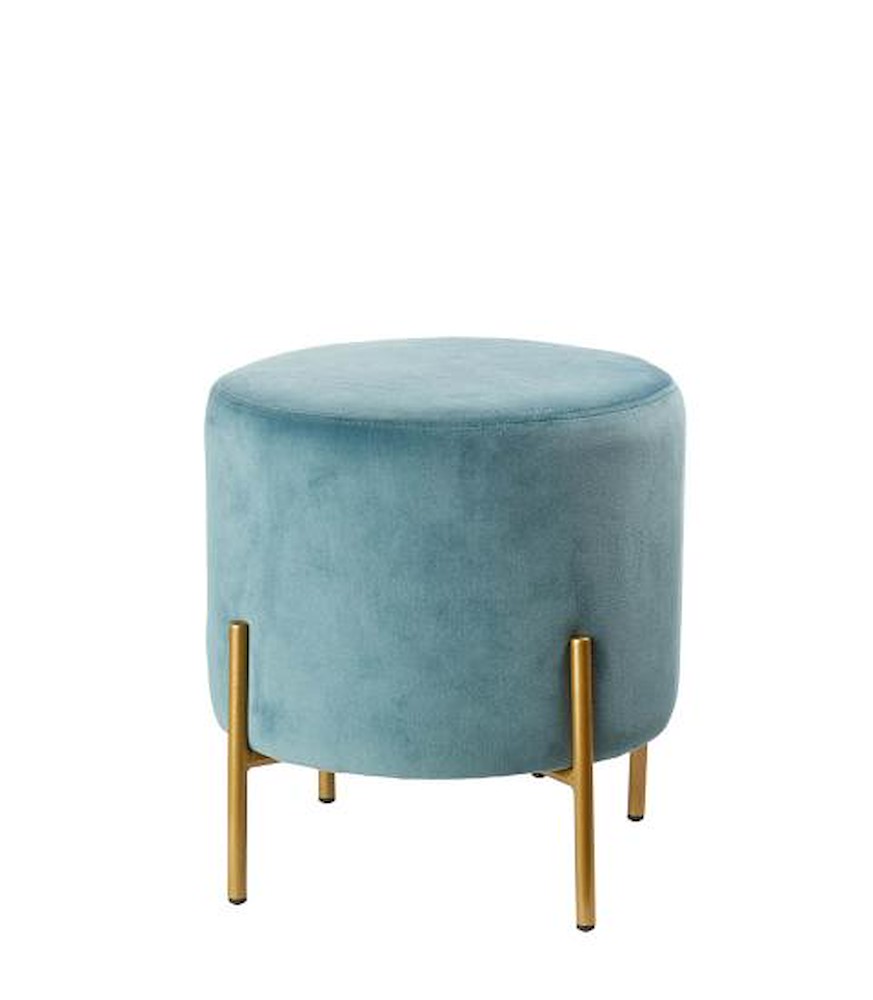 Bohemian designed pouf with gold metal details. Its floral patterns make it perfect for creating a fun and chic atmosphere. Pair with the floral armchair and sugar paper-colored ottoman for fashion-inspired living.