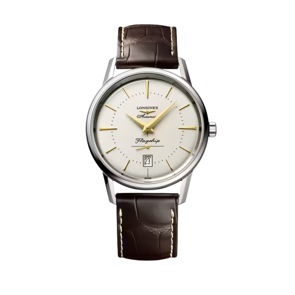 The elegance and simplicity of the Flagship Heritage models have made this LONGINES collection a timeless classic. These timepieces combine technical expertise, aesthetics, and a tribute to the historic Flagship models. An emblematic line of the brand since the late 1950s, Flagship is one of LONGINES' first collections. The term "flagship" refers to the leading ship carrying the flag of the Fleet Commander. On the screw-down case back, the collection's emblem is visible—a hand-painted enamel caravel on an 18-carat gold medallion.