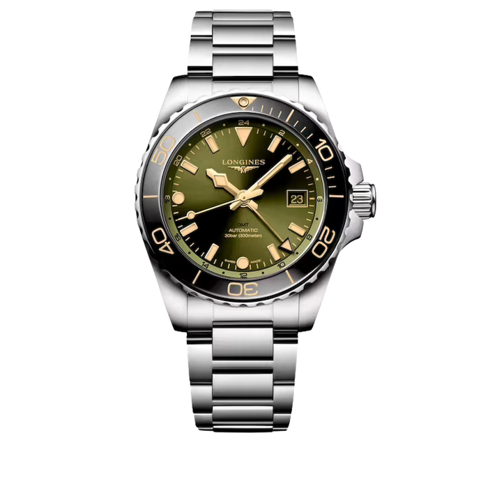 A great classic among sports watches: the HydroConquest line has been expanded with models equipped with a GMT function. Combining technical excellence and elegance, the HydroConquest GMT has drawn inspiration from the world of water sports, drawing on LONGINES' historical experience in developing watches with multiple time zones. Water-resistant to 30 bar (300 m), this GMT watch is powered by an exclusive LONGINES caliber equipped with a silicon balance spring and resistant to magnetic fields.