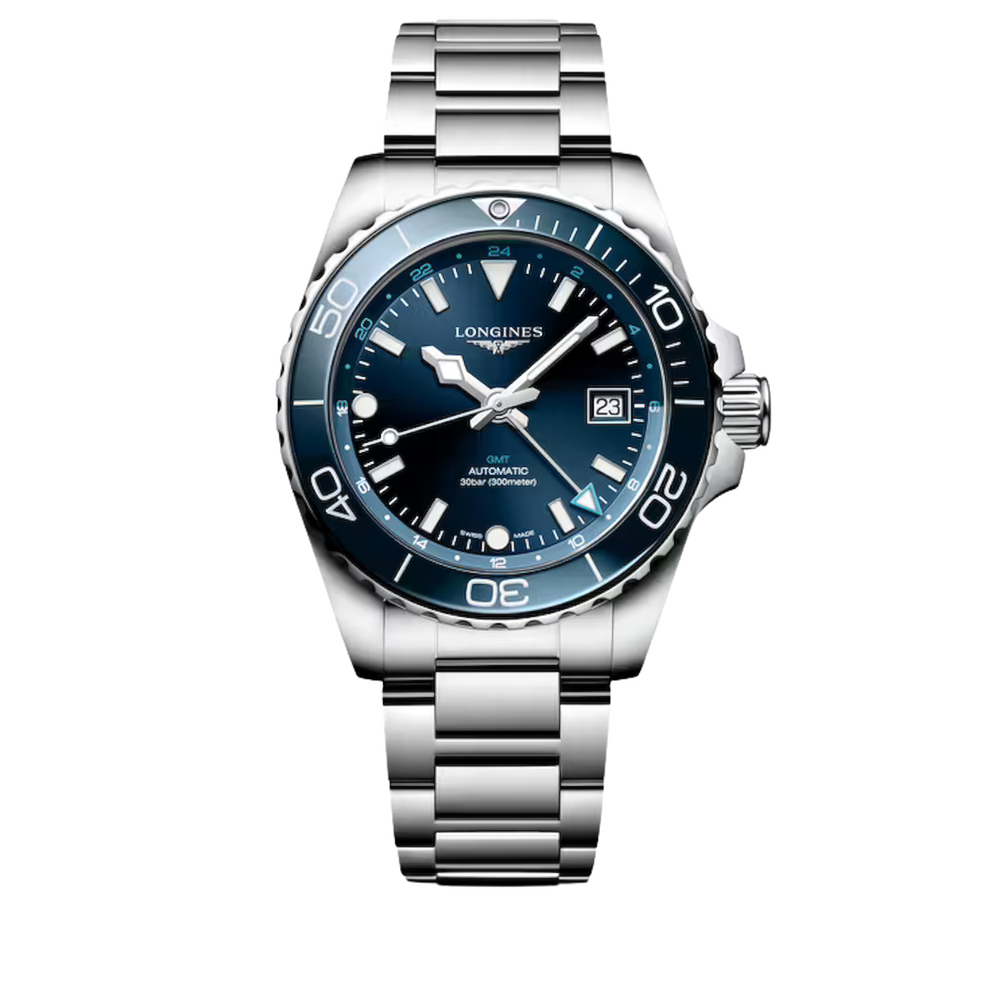 A true classic among sports watches, the HydroConquest line has been expanded with models featuring a GMT function. Combining technical excellence and elegance, the HydroConquest GMT has taken inspiration from the world of water sports, while drawing on LONGINES’ historic expertise in developing watches with multiple time zones. Water-resistant up to 30 bar (300 m), this GMT watch is powered by an exclusive LONGINES calibre equipped with a silicon balance-spring and resistant to magnetic fields.