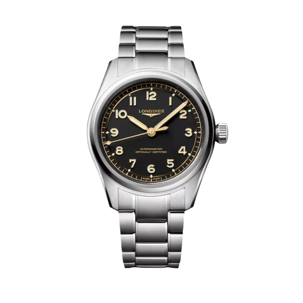 The Longines Spirit Pilot is an automatic watch with a round stainless steel case of 39.00 mm in diameter. It features a mechanical automatic movement that operates at a frequency of 25,200 vibrations per hour and offers a power reserve of approximately 72 hours. The monocrystalline silicon balance-spring ensures precision and reliability.