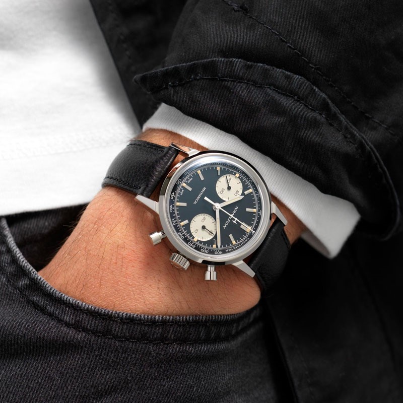 Laddove la linea di orologi Khaki cattura l’essenza del design degli orologi da campo militare, la linea Intra-Matic ha decisamente un altro stile che si basa su alcuni modelli storici Hamilton: i Chronograph A e B del 1968.