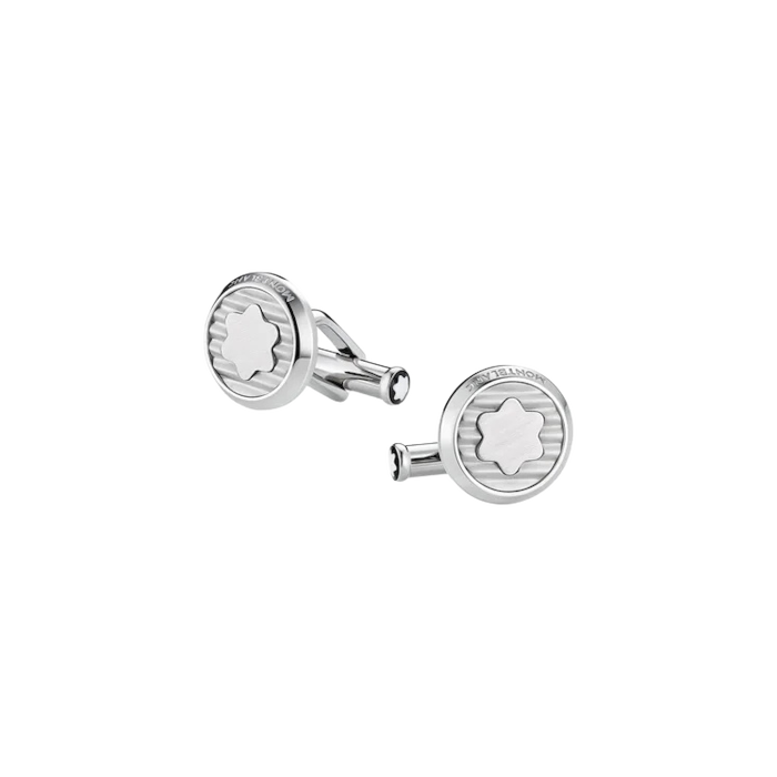 These cufflinks celebrate an understated and elegant style. Round fine steel cufflinks with snowy top and engraved Montblanc branding create a jewel with a strong Montblanc identity.
