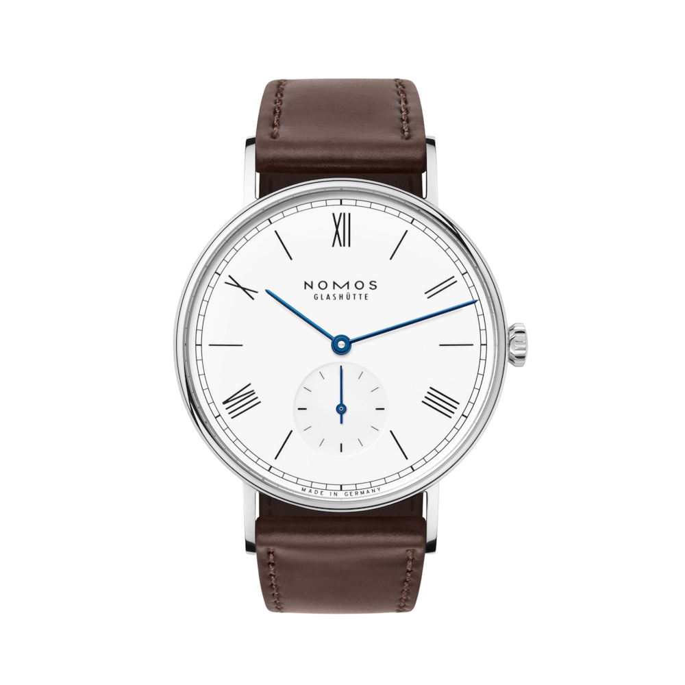 Ludwig 38 in a refreshed look: the timeless classic, now with a luminous enamel-white dial. The caliber inside is also a classic—the manually wound Alpha movement, which never stops.