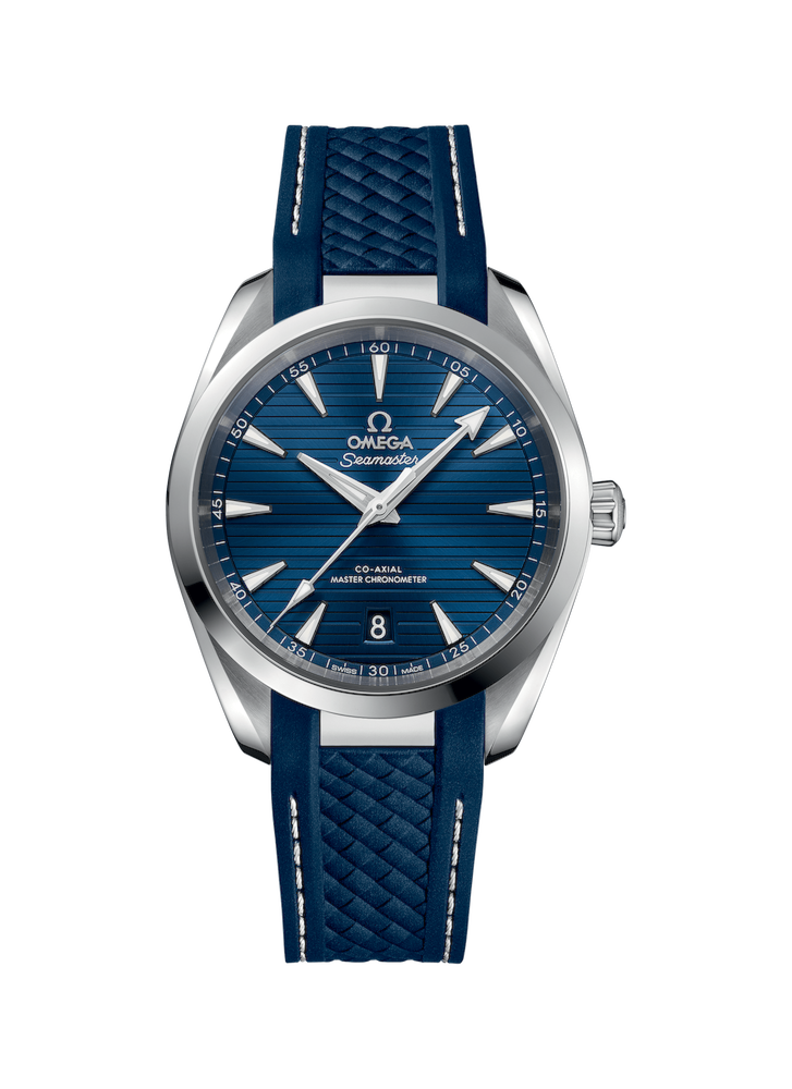 Il cinturino blu in caucciù strutturato include un rivestimento grigio e un’ulteriore maglia in acciaio inossidabile che lo integra alla cassa. Questo cronometro certificato è animato dal calibro OMEGA Master Chronometer 8800, testato dall’Istituto Federale Svizzero di Metrologia (METAS) secondo i massimi standard stabiliti dal settore orologiero.