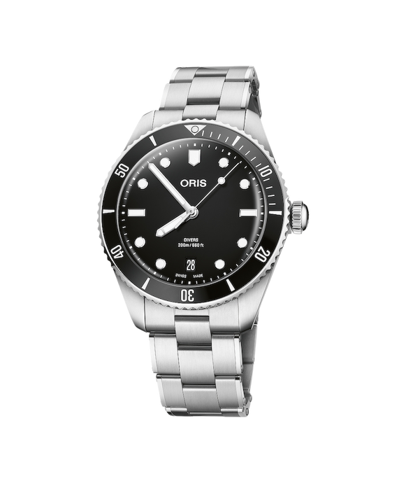 Multi-piece stainless steel case, minute scale on top ring in ceramic. Sapphire crystal, domed on both sides, anti-reflective coating on the inside. Stainless steel screw-down case back with mineral glass window.