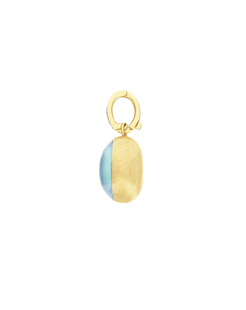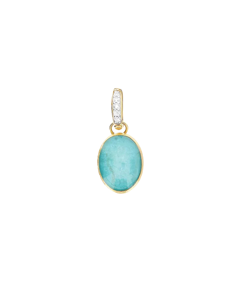 An 18-carat engraved yellow gold charm set with diamonds (0.02 ct, VS, G, brilliant cut) and amazonite and rock crystal stones (1.75 ct). Measures 8 x 18 mm. Elegant and sparkling, perfect for personalising your jewellery.