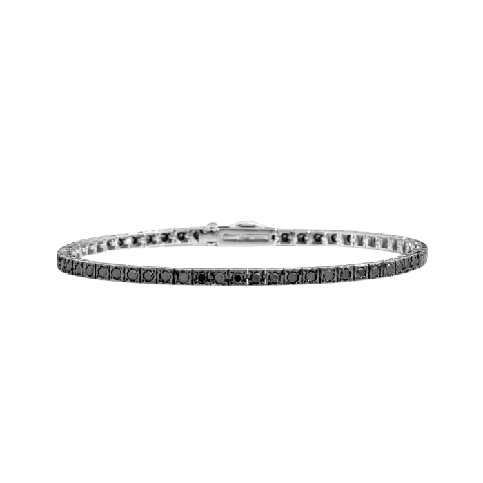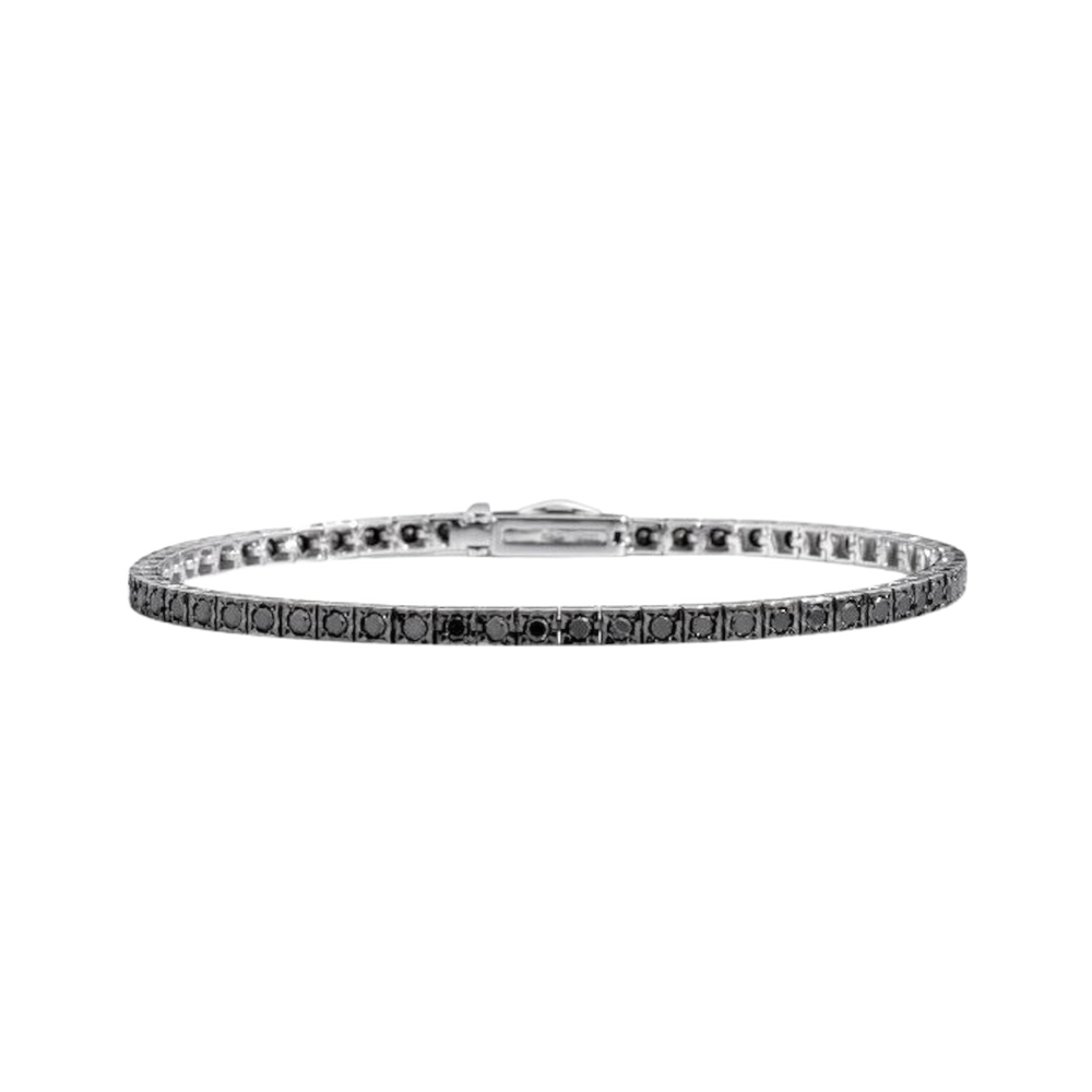 Tennis bracelet in 18 kt white gold and brilliant-cut black diamonds. The black diamonds used by Recarlo are natural gems; the saturation and color homogeneity of these gems may be due to a color strengthening treatment.