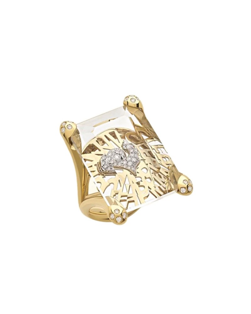 Materiale Gioiello: Oro Giallo con Cristallo di Rocca e Logo galletto in oro bianco con pavè di brillanti