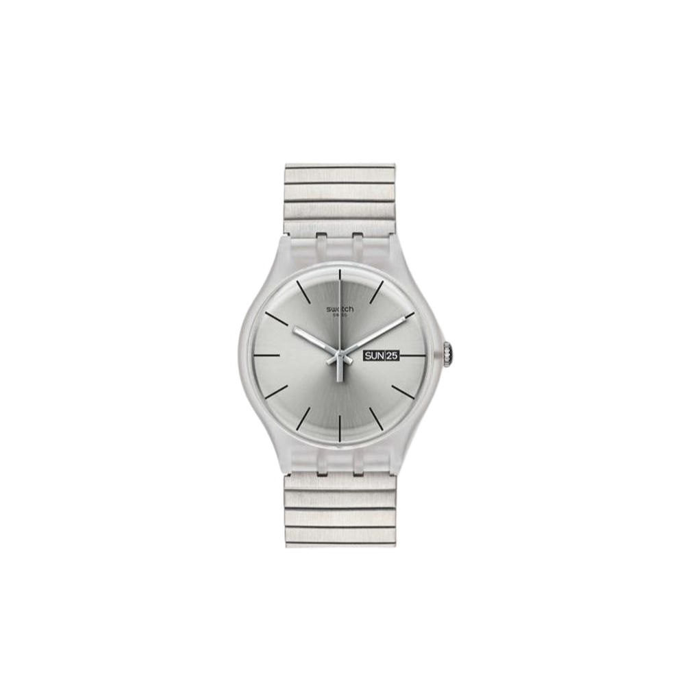 RESOLUTION is a brilliant model with a flexible brushed bracelet and a brushed silver dial. Thanks to the day and date display, you'll always stay in step with the times.