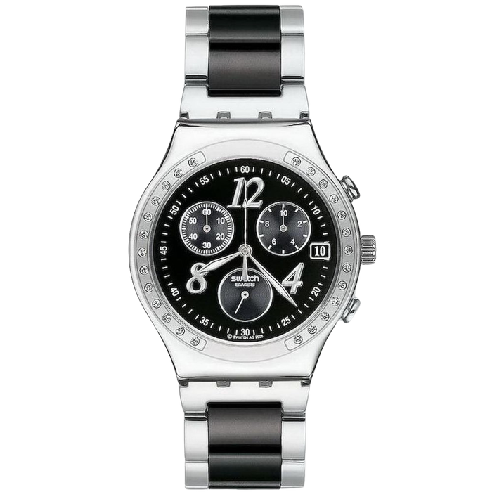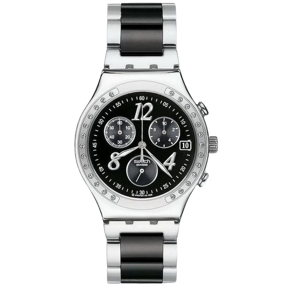Shape Round Glass type Plastic Dial type Chronograph Case material Stainless steel Case diameter 40 mm Case thickness 12 mm Strap material Stainless steel Strap width 20 mm Strap color Multicolor Dial color Black Calendar type Date Special features Calendar weight 80 grams Mechanism type Quartz Maximum pressure 3 bar