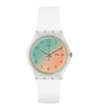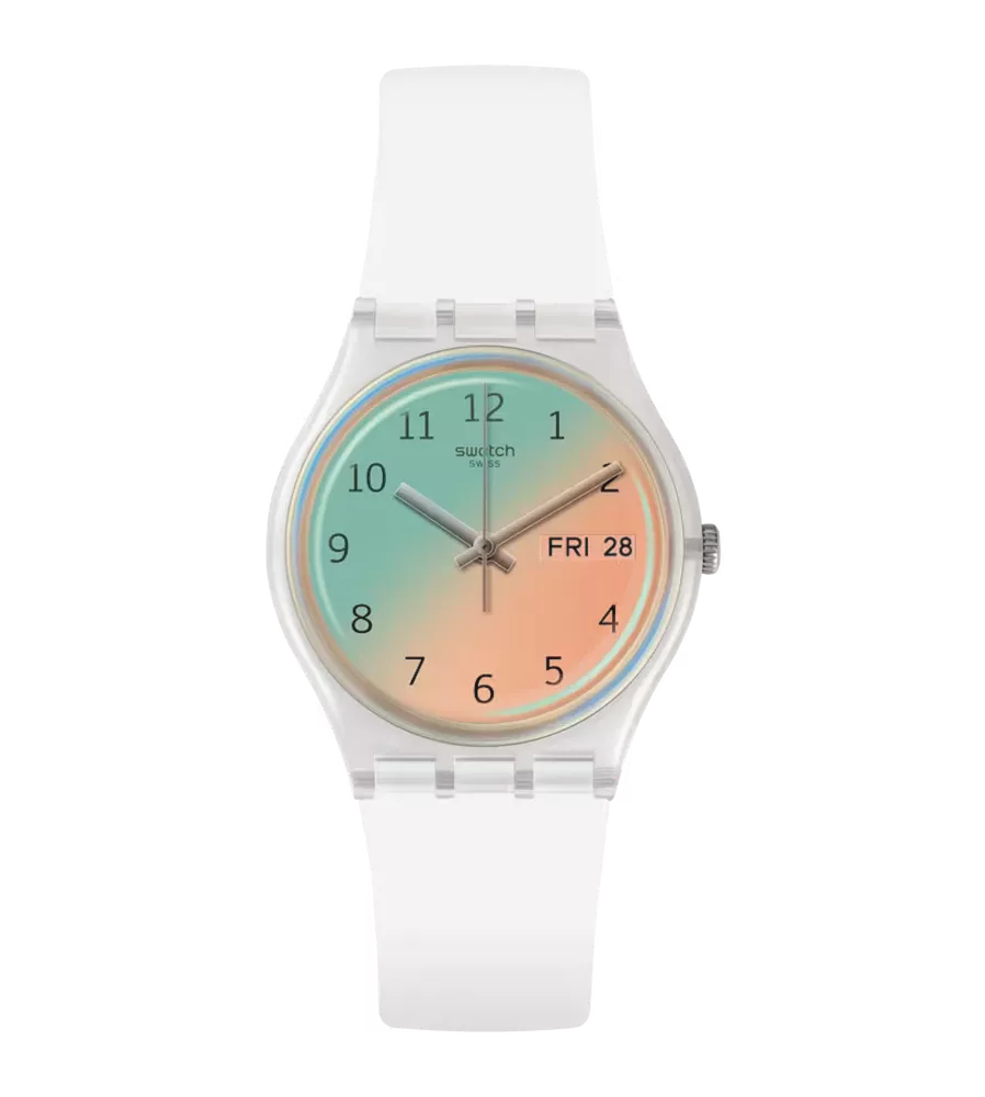 Like a bright and shiny day, ULTRASOLEIL (GE720) sends rays of sunshine in all directions with its beige dial covered by a lustrous Swatch Solar Spectrum Glass.