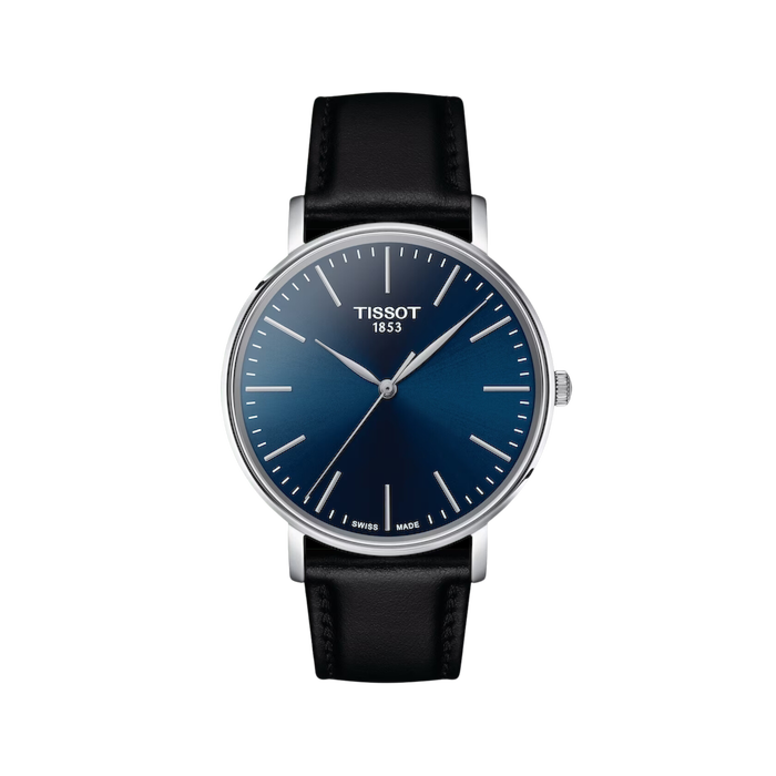 The Tissot Everytime is an understated, pure and chic timepiece suiting the preferences of modern wearers. The Everytime comes in a variety of dial designs and strap options, allowing you to express yourself. With this Tissot timepiece, every time is your time. Finally, the interchangeable quick release bracelet system offers the possibility to change bracelets without any tool, for maximum versatility. Discover this watch with its deep blue dial and black leather strap for a chic and elegant look.