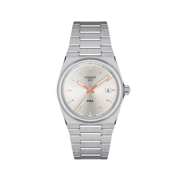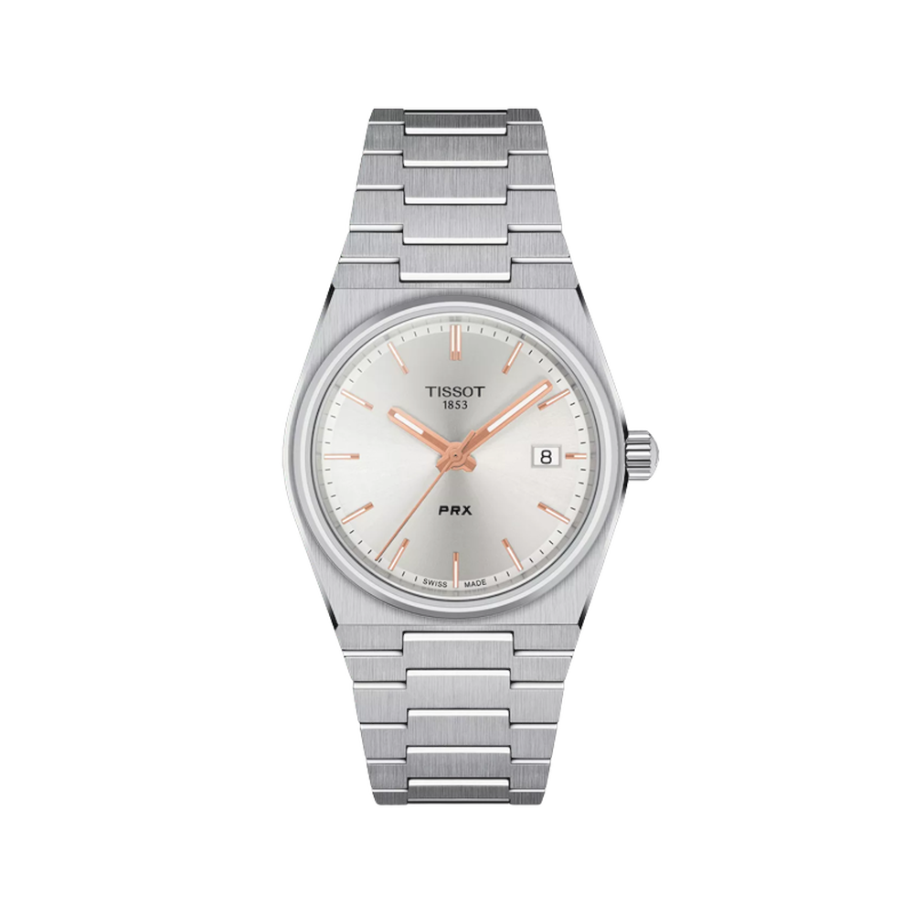 In 1978, the Tissot PRX was born. It is time to celebrate its comeback. The new Tissot PRX, the watch for those with passion for design and an eye for ingenuity, with a sophisticated timeless retro look. A tapered and slim case and a solid, yet ergonomic stainless steel integrated bracelet make the PRX an iconic blast from the past but a modern sophisticated piece. The new PRX is exactly the same size as the original watch from 1978: 35mm - making it even more desirable. Discover this version with a pearly white dial for a feminine and classy look.