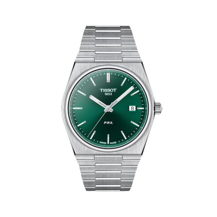In 1978 Tissot created a quartz model, featuring a thin case, narrow indexes and a steel bracelet. Its wide horizontal handle, typical of the time, was perfectly integrated into the flat tonneau-shaped case. A few years later, Tissot trademarked the name PRX. “PR” stands for “precise” and “robust.” The "X" stands for the Roman numeral ten and the 10 bar pressure that the watch can withstand. In 2021 Tissot presented the PRX 40205, It is a modern version of the previous model. The 316L stainless steel case of the Tissot PRX 40205 has a diameter of 40 mm. It has a slightly tonneau shape and is adorned with a narrow, round bezel. On the sides, vertically brushed, rounded finishes alternate with shiny facets. The Tissot PRX 40205 Quartz features a dial with a black or blue sunburst pattern combined with nickel-plated indexes and hands. There is also a variant with a satin-finished silver-grey dial with rose gold-colored indexes and hands, a color combination reminiscent of the late 1970s. The flexibility and softness of the mesh make it a true success of ergonomic design and convey extraordinary comfort. The hands of the PRX 40 205 feature a SuperLumiNova® coating and are positioned on top of each other with minimal clearance. This allows the dial to be brought closer to the watch glass. The optical effect achieved by Tissot designers makes the watch case appear even flatter and thinner than it actually is.