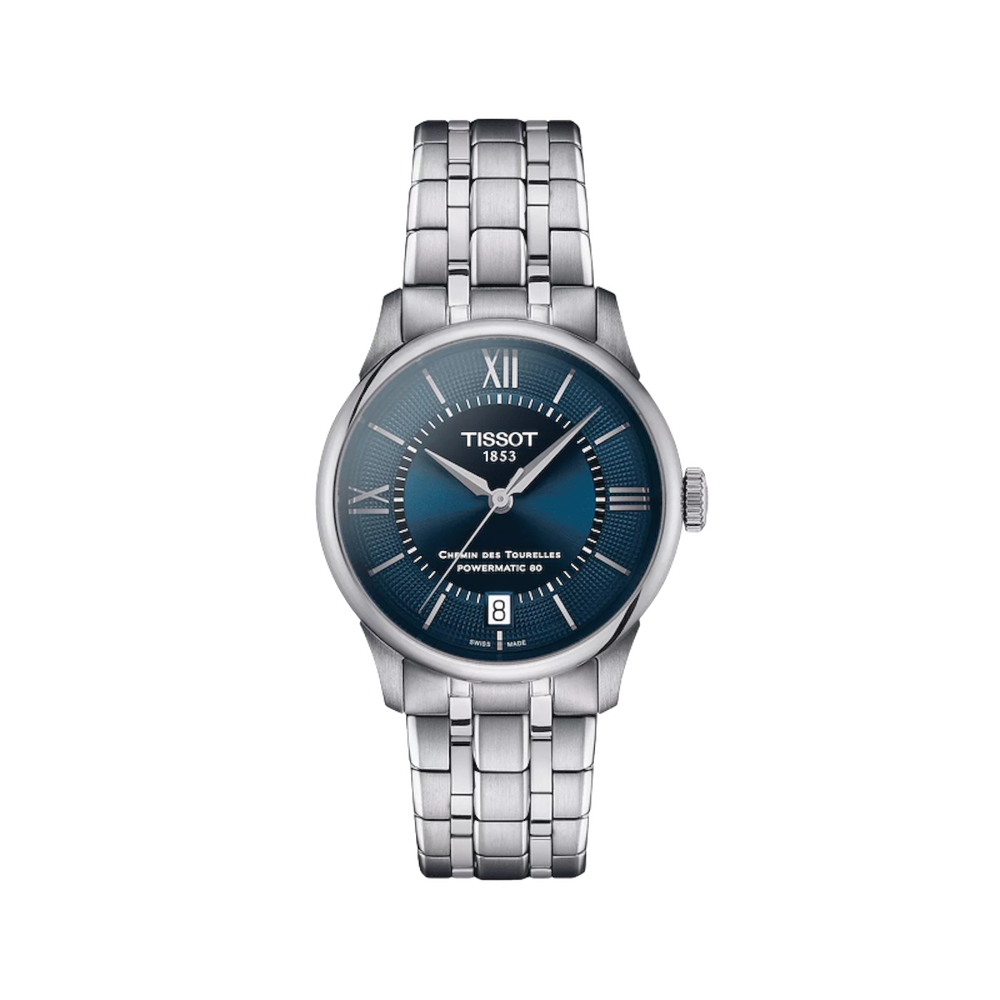 The Tissot Chemin des Tourelles is a very special piece that encapsulates an important part of Tissot's history. It bears the name of the street in Le Locle, Switzerland, where the Tissot factory was established in 1907, and where the company can still be found today. Its contemporary design is perfectly paired with the high quality of our Powermatic 80 movement, for a classic and elegant style. Discover this 34mm automatic watch with its deep blue textured dial and stainless steel bracelet.