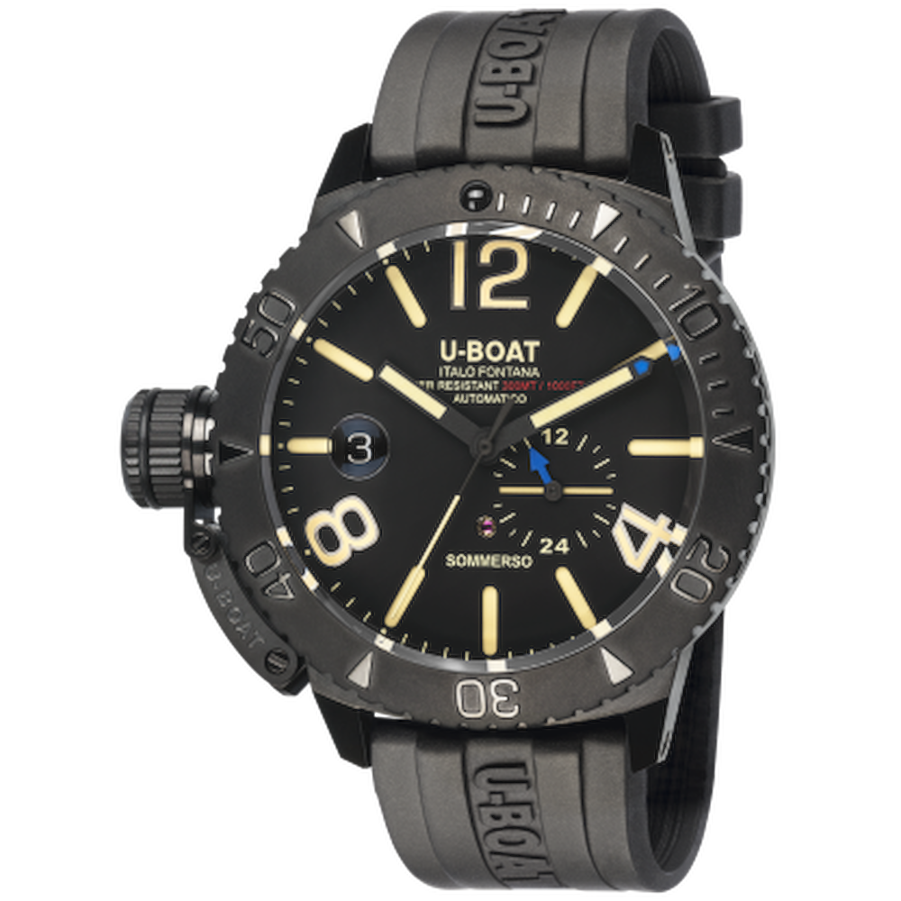 Designed for professional diving, the Sommerso DLC features a rotating bezel and water resistance up to 30 ATM. The case is made of steel with a special ultra-resistant DLC (Diamond-like Carbon) coating.