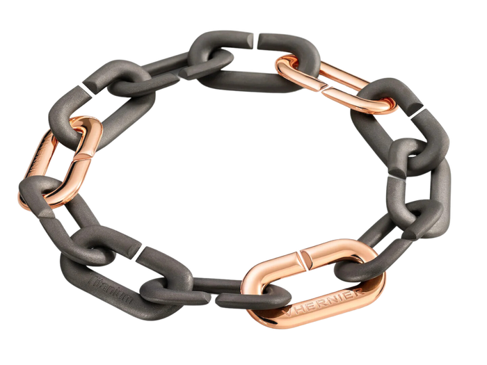 Pure lines and unconventional combinations: Mon Jeu in rose gold and titanium revisits the classic concept of the chain. Cutting on each link allows you to change the order of elements and add new Mon Jeu modules.