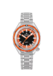 A faithful reproduction of the first DEFY diver’s watch from 1969. The DEFY Revival A3648 is crafted in a faceted 37mm steel case with a unidirectional rotating bezel in steel with orange tinted sapphire insert, with a water-resistance of 60 ATM (600 metres). Black and orange dial with luminescent hands and markers. Powered by the Elite 670 automatic manufacture movement with 50 hours power reserve. Steel bracelet with folding clasp.