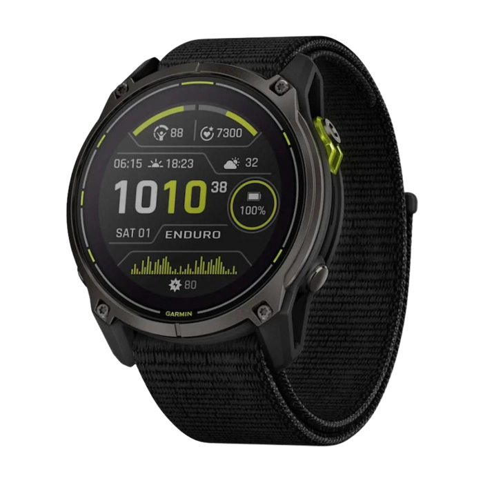 Enduro™ 3 non è solo un dispositivo di alta tecnologia; è costruito per resistere. La lunetta in titanio e la lente in vetro zaffiro lo rendono robusto e duraturo. Goditi fino a 90 giorni di autonomia in modalità smartwatch e sfrutta le avanzate funzioni di allenamento, come il monitoraggio della stamina in tempo reale e i programmi di forza dedicati a ultrarunner, ciclisti ed escursionisti.