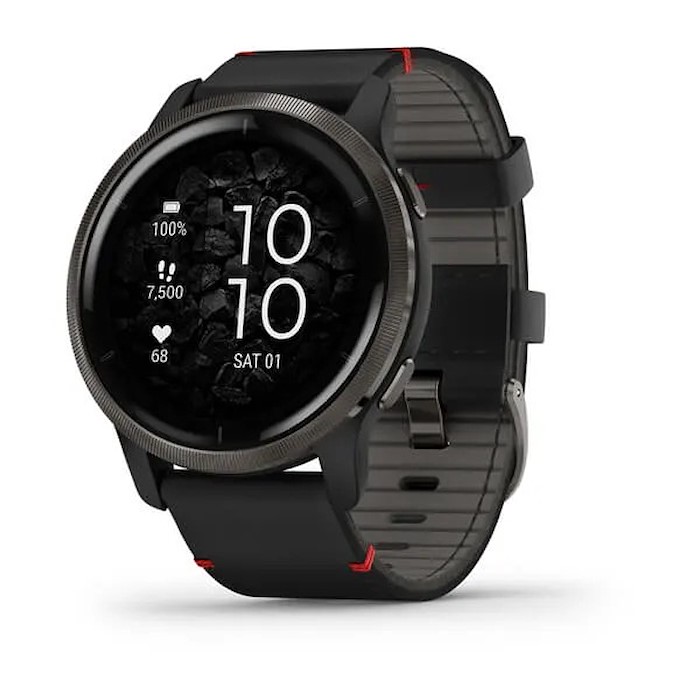 Smartwatch Garmin con cassa rotonda in polimeri fibrorinforzati dal diametro di 45 mm e spessore di 12,2 mm.