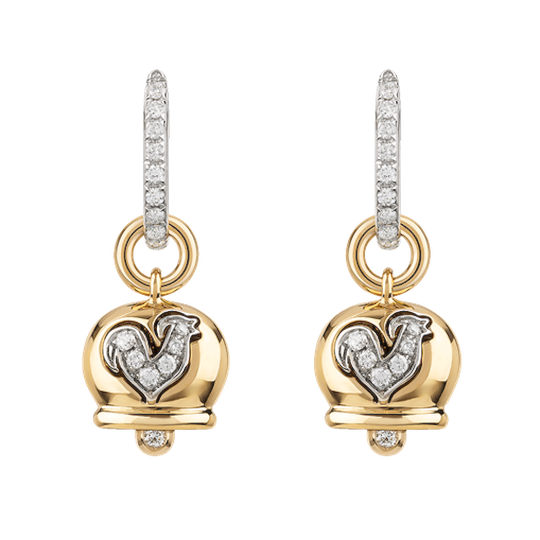 oro bianco 18kt, diamanti e gallo in pavé di diamanti
