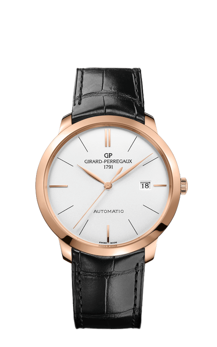 Un modello che segue lo spirito di design degli orologi degli anni '60 e un omaggio ai progressi tecnici di Girard-Perregaux nel campo della cronometria, coronato dal Premio del Centenario dell'Osservatorio di Neuchâtel. Si prega di notare che questa referenza è stata prodotta anche con un quadrante che non mostra l'anno della nostra fondazione.
