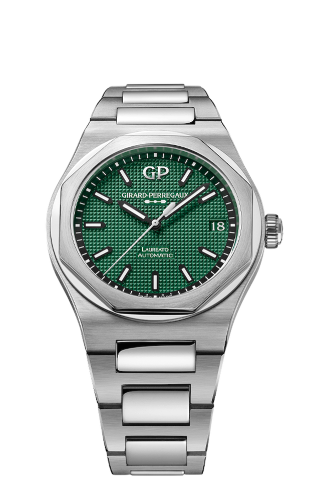 Le tonalità virescenti sono associate all'armonia, alla salute, alla speranza e alla prosperità. In effetti, questa tonalità ammaliante significa molto per molti e conferisce un fascino duraturo; il verde non è una moda passeggera, è un classico intramontabile. Allo stesso modo, il Girard-Perregaux Laureato, lanciato nel 1975, rimane senza tempo e continua a coinvolgere gli appassionati di orologi e i devoti del design raffinato. Racchiuso in acciaio con bracciale integrato, il Laureato è sinonimo di versatilità, dimostrandosi adatto a tutti i ruoli, siano essi sportivi, casual o formali. Ora, Girard-Perregaux unisce il Laureato con un nuovo, caratteristico quadrante verde. Questa tonalità è abbinata a un motivo del quadrante Clous de Paris, accentuando la ricchezza del colore del quadrante mentre passa da una tonalità all'altra, a seconda della luce disponibile.