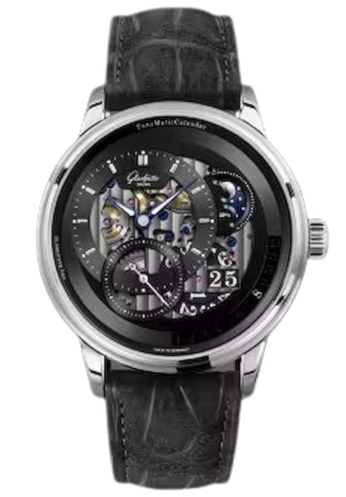 GlashUtte Original è orgogliosa non solo di presentare un nuovo movimento e un raffinato segnatempo, ma anche di aggiungere una nuova complicazione alla sua collezione: il calendario annuale Questo nuovo orologio della Manifattura si presenta con una cassa da 42 mm realizzata in platino ed è prodotto in soli 150 esemplari. Il fondello in vetro zaffiro permette di ammirare le rifiniture tradizionali del movimento. Il cinturino di color nero in pelle scamosciata di alligatore della Louisiana e la sua fibbia déplovante in platino assicurano una calzata confortevole e sicura.